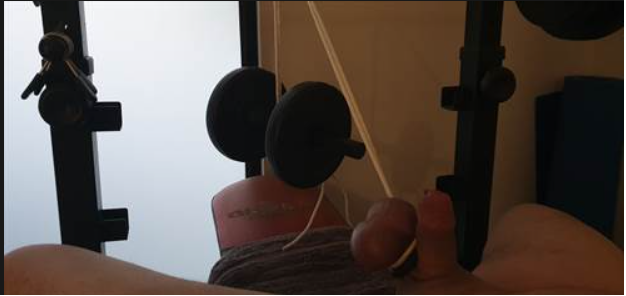 SLAVE SIXTY FOUR. Today we have slave 64 showing off his dumbells. To keep fit he drags dumbells along the floor, attached to his dumbells. Stretches out his velvet sack making even more room in there for his little dumbells. Sorry slave 64 it will make your velvet sack bigger but your dumbells will remain small. It will get you extra horny and so keep doing it because I would like a big load from you next time you are allowed to cum.